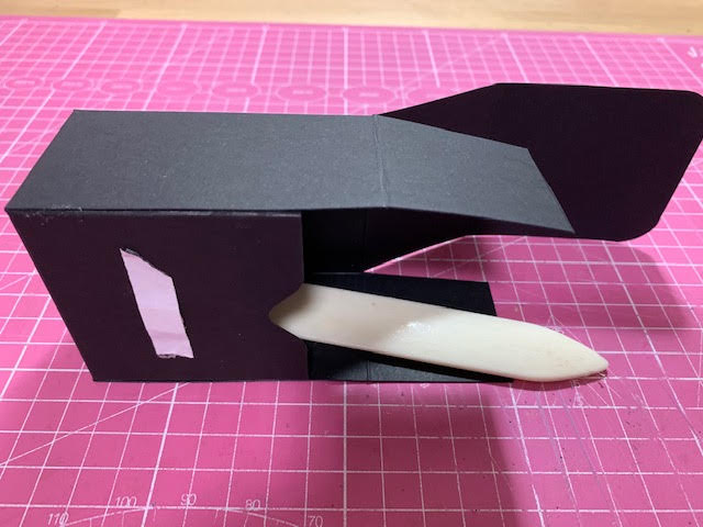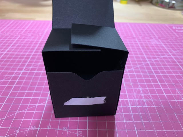 מקפלים את חזית הקופסה (החלק עם המגרעת) ומעליו מקפלים את המכסה