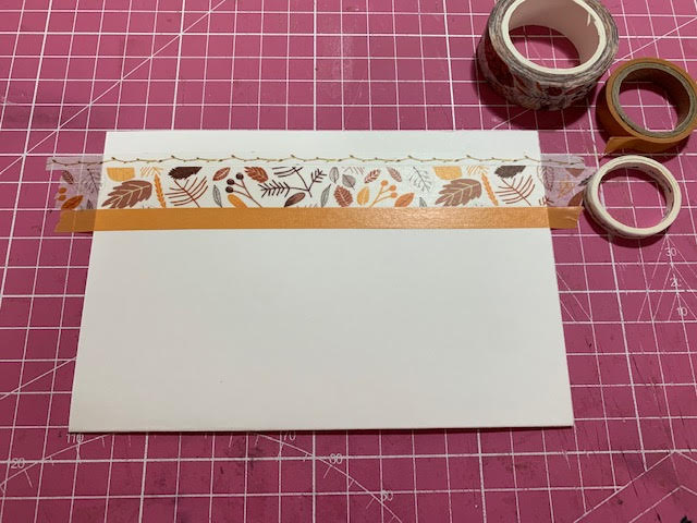 מדביקים 3 פסי וואשיטיפ מקבילים לצד הארוך של הכרטיס במרחק של בערך "1/2 מהשוליים