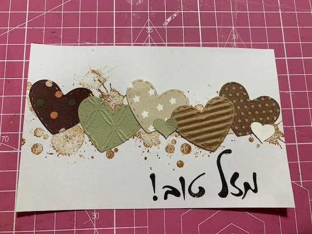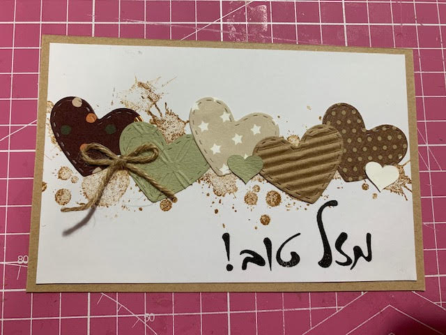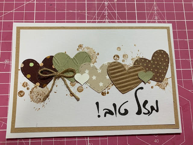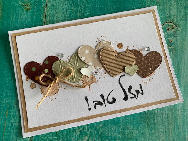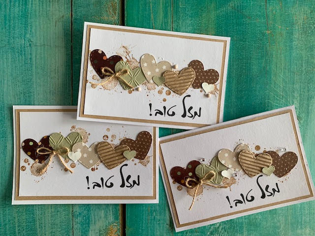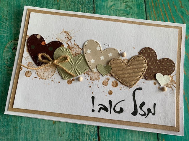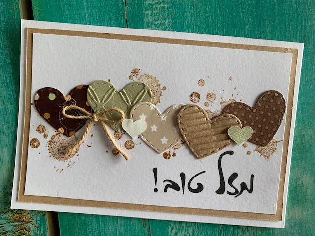 כמו רוב סדרות הכרטיסים האחרונות גם הוא בצבעים יהיו לבן / שמנת , קראפט, ירוק זית בהיר, זהב… שפריצים מחותמת שהוחתמו בדיו דיסטרס, לבבות חתוכים מתבניות חיתוך בביג שוט, סחוט שמשון קשור פפיון חותמת ברכה וזהו…
