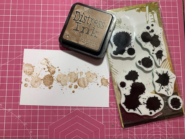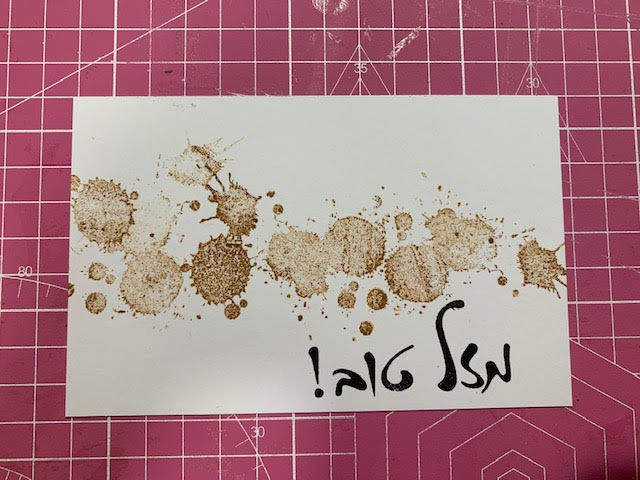 מחתימים חותמת שפריצים של צבע ודיו דיסטרס חום פס לרוחב באמצע הקרדסטוק חזית