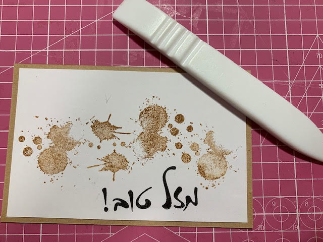 מדביקים את הקרדסטוק המוחתם של החזית על המאטינג – קרדסטוק קראפט בגודל "1/2 3 * "1/2 5