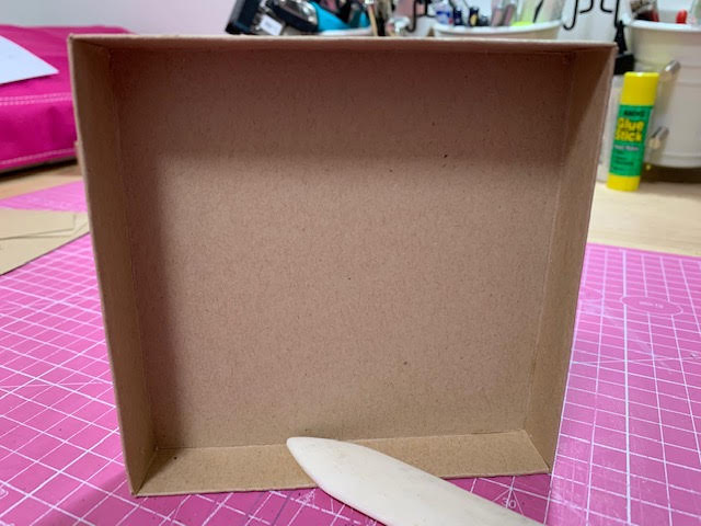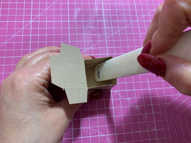 מדביקים את הכנפיים אל תוך הקובייה מסדרים ומיישרים את הקובייה אפשר להיעזר בשולחן. עוברים עם עצם קיפל להידוק