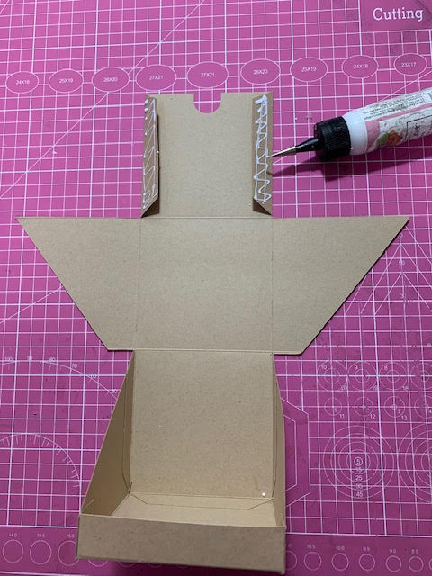 מקפלים את שתי הכנפיים הקטנות של החלק הקטן מורחים עליהן דבק ומדביקים אל המשולשים