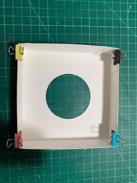 מצמידים ומדביקים את הכנפיים לדפנות הסמוכות (בצד הפנימי של המכסה)