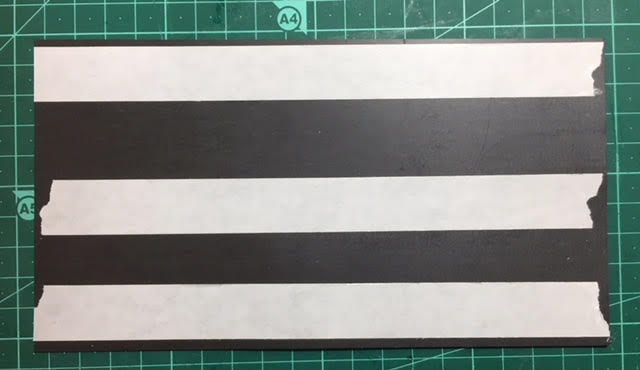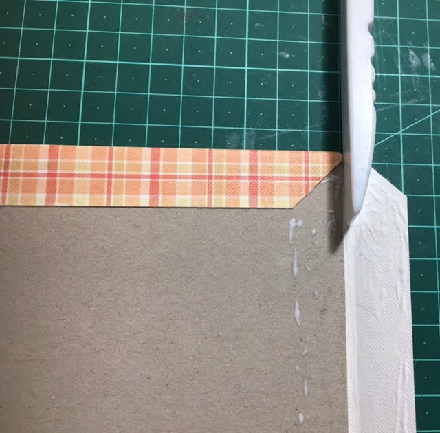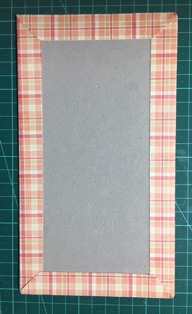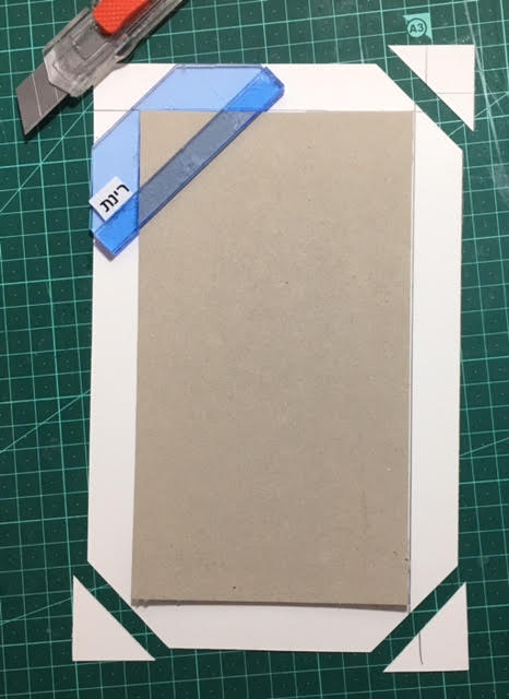 להדביק את הצ'יפבורד על גב הניר המדוגם ולחתוך מסגרת בסכין חיתוך ברוחב השבלונה / ספייסר