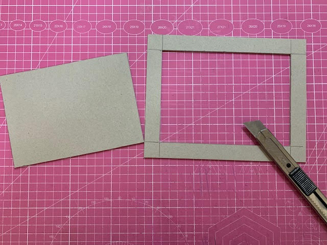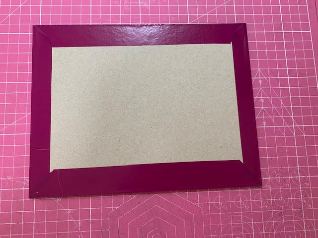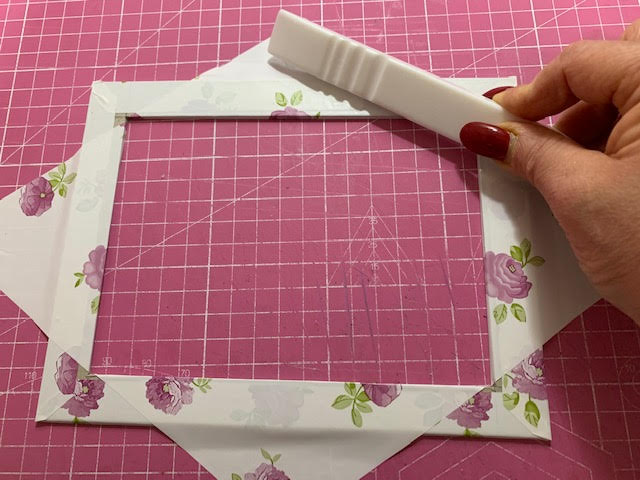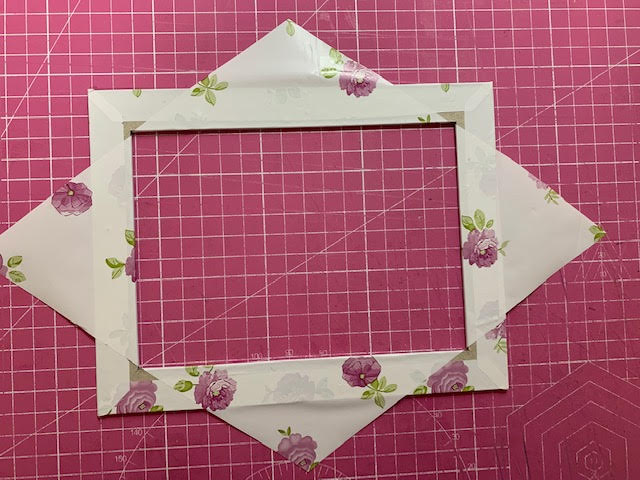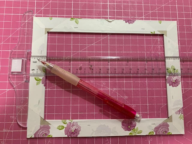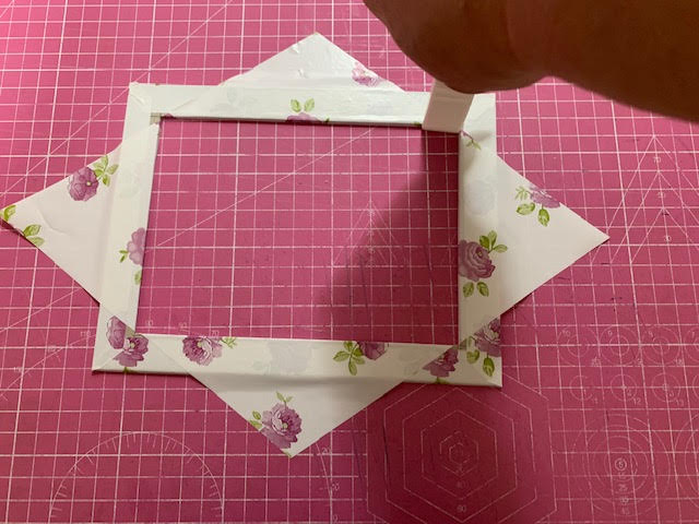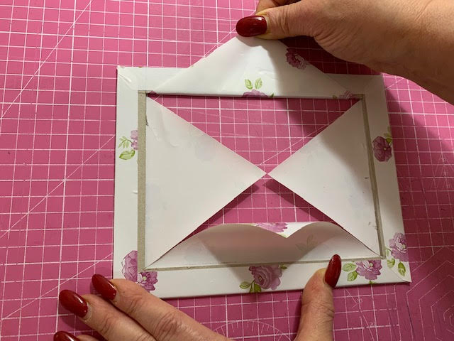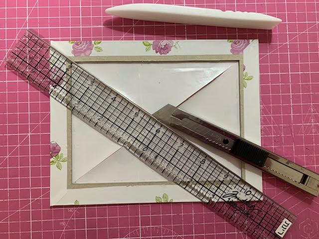 בעזרת סרגל וסכין חיתוך חותכים שני אלכסונים בטפט שבתוך המסגרת