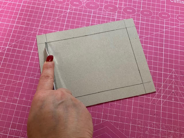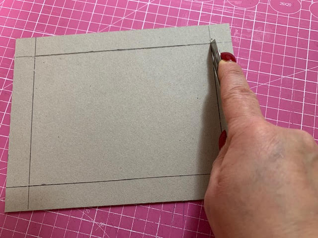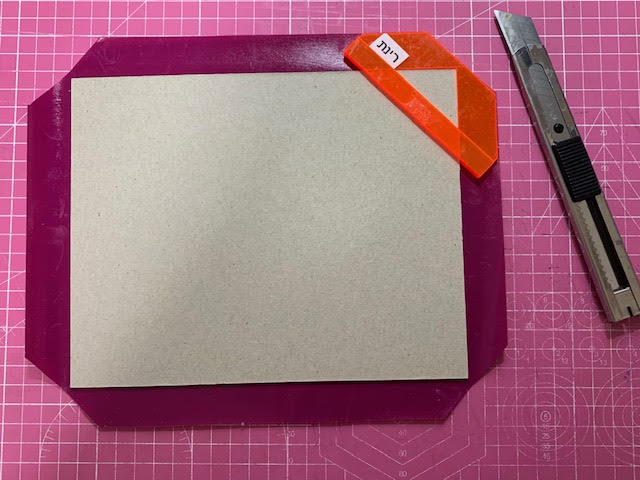 חותכים 4 פינות בעזרת סרגל לחיתוך פינות וסכין חיתוך