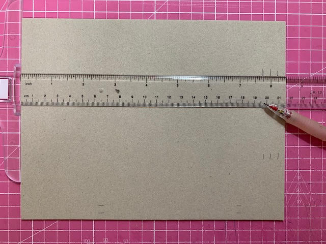 מודדים בסרגל ומסמנים על הצ'יפבורד 2 נקודות בהתאם לגודל הרצוי