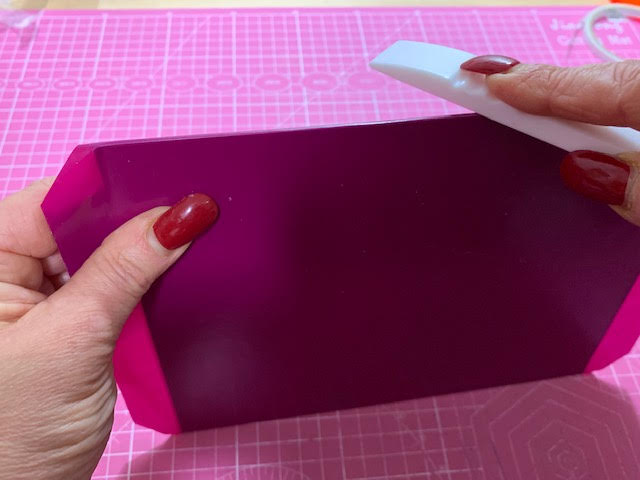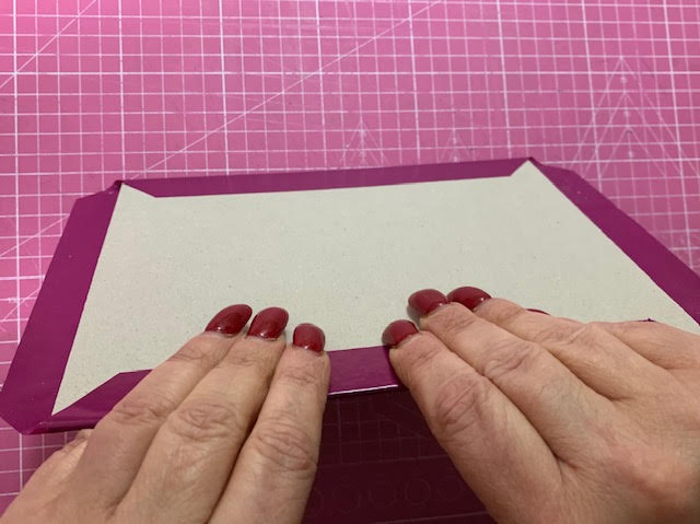 מרימים את הצ'יפבורד עם הטפט תוך כדי גרירה על השולחן כדי להצמיד את השוליים הארוכים של הטפט לדופן / לעובי של הצ'יפוברד
