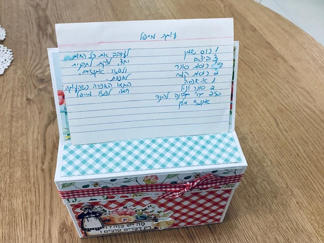 מכינה קופסת מתכונים כדי שיהיה איפה לכתוב מה להכין גם לשבת ולא רק.