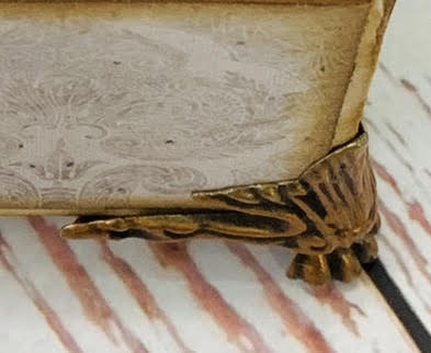 כדי לשוות יוקרה עטפתי את פנים הקופסה בניר קטיפה בצבע ורוד עתיק, לפרזול הוספתי רגליים מברונזה