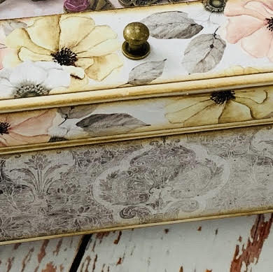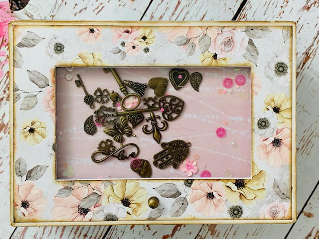 את צידה החיצוני של הקופסה דיגמתי בנירות מדוגמים מאותו הסטאק של קלסר החתונה