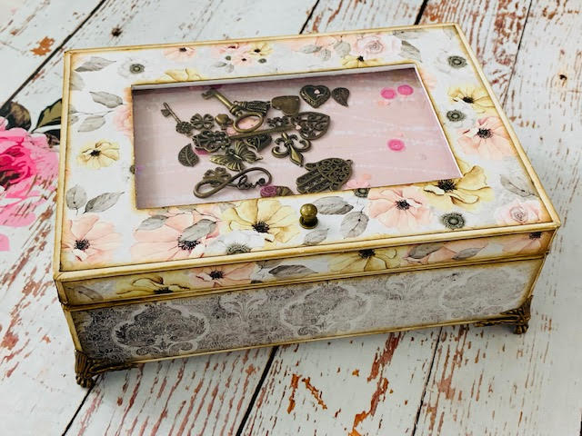 כל הקופסה קיבלה קצת מראה וינטג'י בזכות הדיסטרוס, הצ'ארמים והפרזול בצבע ברונזה.