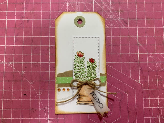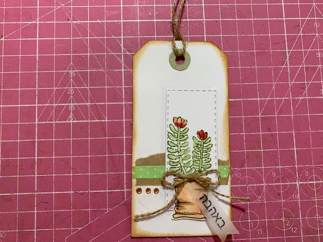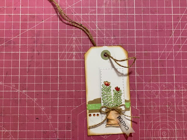 התגית שעליה מוחתם הקקטוס היא תגית מלבנית בגודל