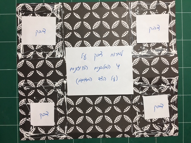 למרוח דבק ב 4 המלבנים החיצוניים (על הצד המדוגם)