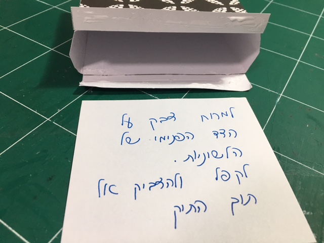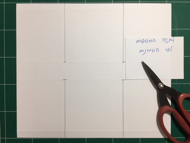 להפוך את הניר המדוגם ולהדביק את המלבן הימני העליון אל המלבן האמצעי