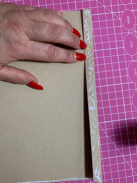 מורחים דבק על שולי האקורדיון של הכיס עם המגרעת וגם על הקיפול בחלקו התחתון של הכיס.