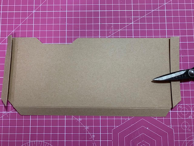 חותכים בעזרת סרגל וסכין חיתוך את הלשונית שנוצרה ומדביקים על הכיס התחתון תוך שמשאירים מטינג (מסגרת של "1/8).
