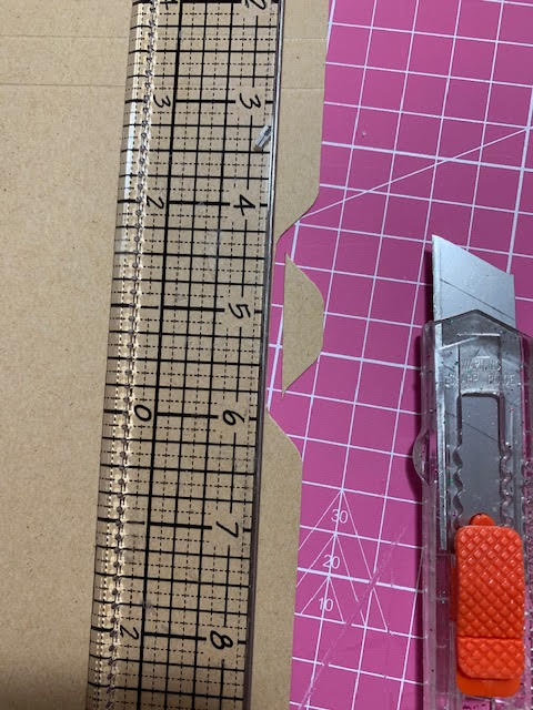 חותכים את הלשונית שנוצרה בין שתי המגרעות. נעזרים בסכין חיתוך וסרגל.(מי שיודעת יכולה להשתמש בטרימר).