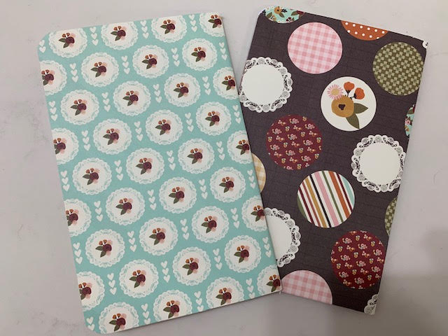 הכנתי 2 מחברות בגודל "7 * "1/2 4 כרוכות בניר מדוגם אחת עם דפי מדפסת לבנים A4 והשניה עם דפי חשבון A4.