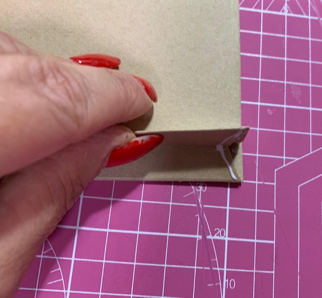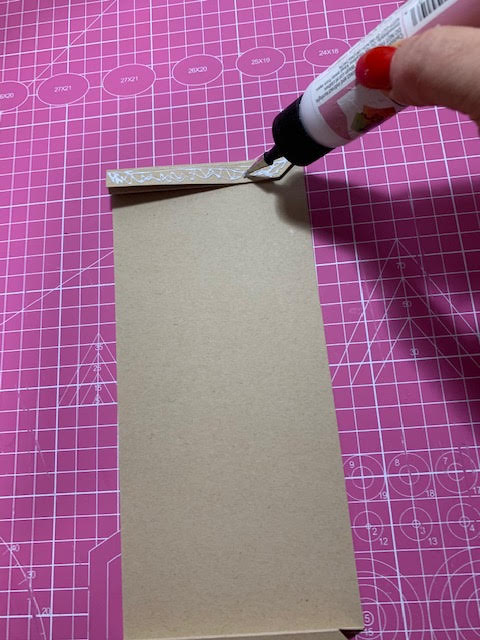 מורחים דבק על שולי האקורדיון של הכיס עם המגרעת וגם על הקיפול בחלקו התחתון של הכיס.