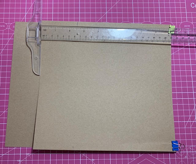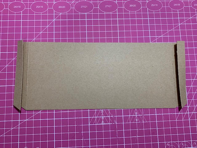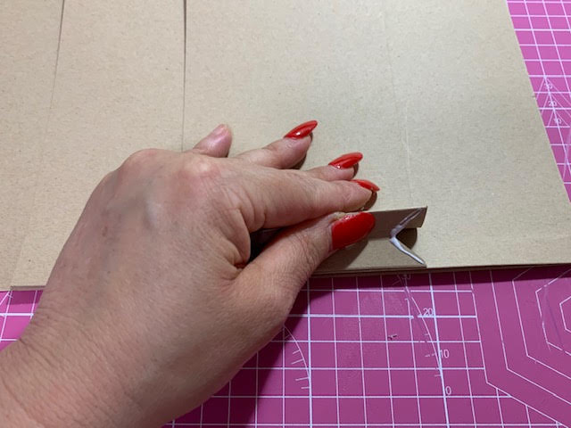 חותכים בעזרת סרגל וסכין חיתוך את הלשונית שנוצרה ומדביקים על הכיס התחתון תוך שמשאירים מטינג (מסגרת של "1/8).