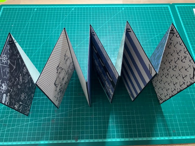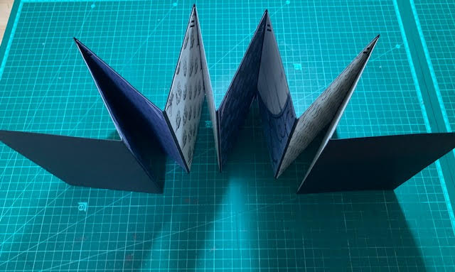 מדביקים את כל חלקי הקרדסטוק קודם את 4 החלקים עם הכנף ואח"כ את החלק ללא הכנף ויוצרים בסיס אקורדיון.