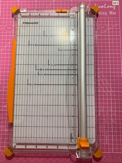 דרך אגב אני עובדת גם עם טרימר "12 של FISKARS דגם 154560עם מסילת אלומיניום. טרימר מעולה! החיתוך בו מדוייק. הסכין נעה על מסילה יציבה.